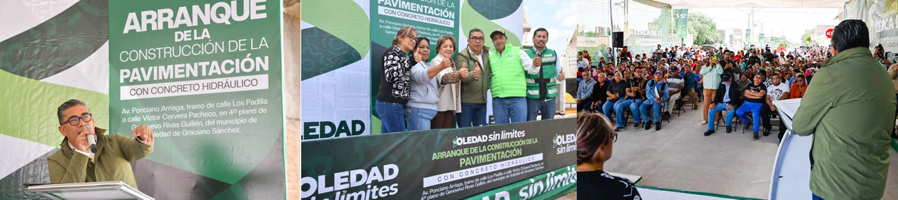 Soledad de Graciano Sánchez SLP.- Juan Manuel Navarro Muñiz, Alcalde de Soledad de Graciano Sánchez, encabezó el arranque de la obra de pavimentación con concreto hidráulico y sistema de alumbrado público de la avenida Ponciano Arriaga, en el tramo que va de calle Los Padilla a calle Víctor Cervera Pacheco, con una inversión superior a los 23.5 millones de pesos, beneficiando directamente a casi 6 mil habitantes; este proyecto forma parte del compromiso permanente del Gobierno Municipal por mejorar la infraestructura urbana y elevar la calidad de vida de las familias.