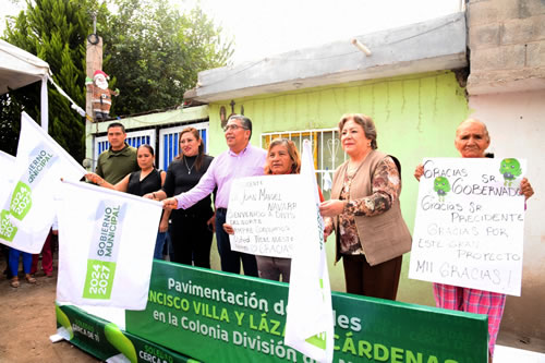Soledad de Graciano Sánchez SLP.- Juan Manuel Navarro Muñiz, Alcalde de Soledad de Graciano Sánchez, acompañado de decenas de familias, dio el banderazo de arranque a la obra de pavimentación de las calles Francisco Villa y Lázaro Cárdenas en la colonia División del Norte, con una inversión de casi 7 millones de pesos; durante su mensaje, el Alcalde anunció con firmeza que antes de que finalice su gestión, toda la colonia estará completamente pavimentada.