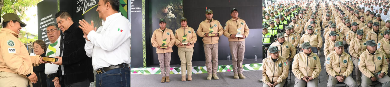 Soledad de Graciano Sánchez SLP.- Resultado de la transformación institucional que se ha dado a la Guardia Civil Municipal de Soledad Graciano Sánchez, por parte del Alcalde, Juan Manuel Navarro Muñiz, este jueves, fueron reconocidos cuatro agentes, hombres y mujeres, que han demostrado en su labor policial, el orgullo y el compromiso al portar el uniforme verde y velar por la protección ciudadana y la vocación de servir a las familias.