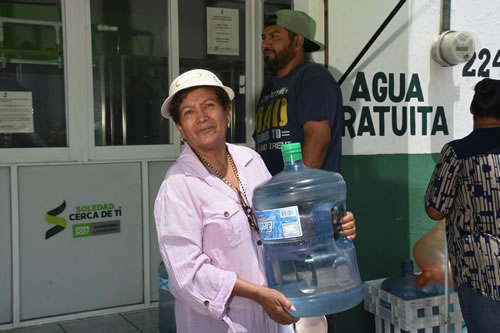 Soledad de Graciano Sánchez SLP.- Juan Manuel Navarro Muñiz, Alcalde de Soledad de Graciano Sánchez, sigue consolidando la cercanía social a través de la red que incluye cerca de 50 purificadoras de agua gratuitas en colonias y comunidades del municipio, beneficiando directamente hasta 5 mil personas por punto de distribución; con esta estrategia, se entregan de tres a cinco garrafones semanales por familia, según la temporada, como parte del compromiso de su Gobierno para brindar servicios públicos de calidad y proteger la salud de las familias soledenses.