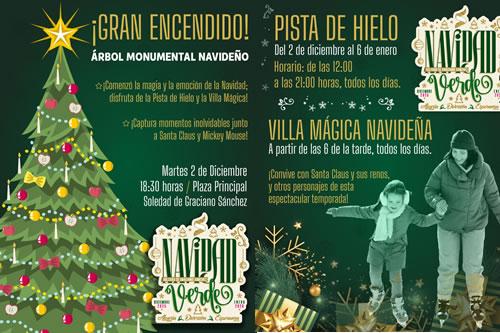Soledad de Graciano Sánchez SLP.- El Ayuntamiento de Soledad de Graciano Sánchez invita a todas las familias a reunirse este martes 2 de diciembre en la Plaza principal, para vivir junto al Alcalde Juan Manuel Navarro Muñiz, el mágico encendido del Árbol monumental, la Villa Navideña y el arranque de la Pista de Hielo, en un momento que busca llenar de luz, alegría y unidad el corazón del municipio.
