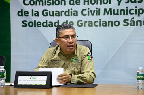 Soledad de Graciano Sánchez SLP.- El alcalde Juan Manuel Navarro Muñiz afirmó que Soledad es el municipio de la zona metropolitana que más colabora con el Gobierno del Estado en materia de seguridad, al mantener operativos conjuntos y permanentes con la Guardia Nacional, la SEDENA y la Guardia Civil Estatal. Gracias a esta coordinación, destacó, se ha logrado la detención de objetivos criminales, la recuperación de vehículos robados y la reducción de los niveles de violencia. “Seguimos patrullando la ciudad las 24 horas del día, porque un policía es de 24 horas, no de 12”, enfatizó.