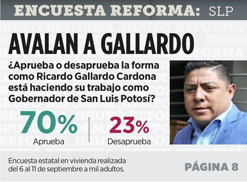 San Luis Potosí SLP.- El Gobernador de San Luis Potosí Ricardo Gallardo Cardona, alcanzó el 70 por ciento de aprobación ciudadana, de acuerdo con la encuesta publicada por el Grupo Reforma a septiembre de 2025, con reconocimiento por las obras de infraestructura, los programas de apoyo social además de la atracción de inversiones y la dinamización de la economía local.