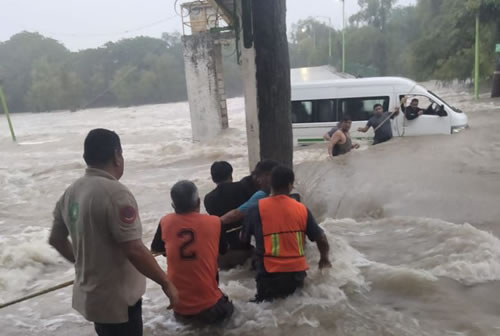 La Coordinación Estatal de Protección Civil reiteró el llamado a la población de atender las recomendaciones de evitar ingresar a pie o en vehículo en las bajadas de ríos, ya que este domingo personal de la dependencia estatal en coordinación con Protección Civil de Ciudad Valles y Bomberos apoyaron a conductor de urban que de manera imprudente intentó cruzar el rio Valles en la colonia Juárez.