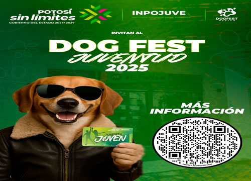 San Luis Potosí SLP.- Este domingo 22 de junio de 9:00 a 19:00 horas, el Instituto Potosino de la Juventud será sede del Dog Fest Juventud 2025 un evento donde habrá adopciones, concursos, mercadito emprendedor, área gastronómica y muchas sorpresas más, en un ambiente pet friendly y familiar.
