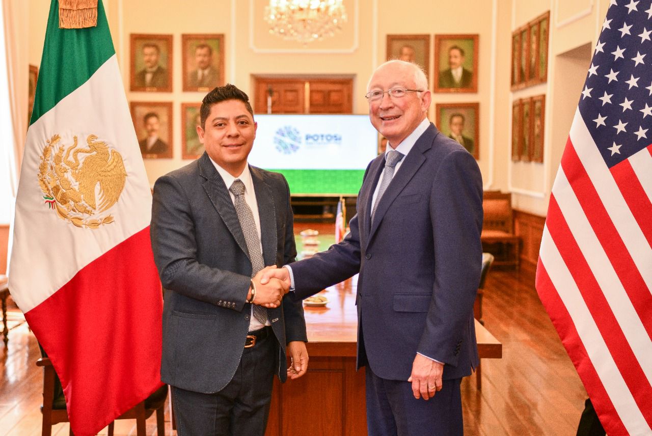Dijo que esto es un gran aliciente para proyectar a nuestro estado y es lo que ha motivado que la entidad haya recibido en el primer año a diversos representantes mundiales, que traerá mayores beneficios a San Luis Potosí; “con Estados Unidos hay un compromiso mutuo en materia de seguridad y estoy seguro de que se consolidará una coordinación y colaboración del país del norte para apoyar en esta materia a nuestro estado”.