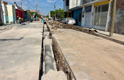 La intervención abarca ocho calles de la colonia, además de la avenida Lagos de Moreno, desde Circuito Potosí hasta diversos puntos del sector, donde se reemplazan tuberías dañadas para eliminar riesgos sanitarios frente a las viviendas, contemplando la reposición de más de mil 670 metros lineales de tubería, la construcción de pozos de visita, excavaciones, rellenos y la reconstrucción de concreto hidráulico, todo ello respaldado por una inversión superior a los dos millones de pesos del Fondo de Fortalecimiento Municipal.