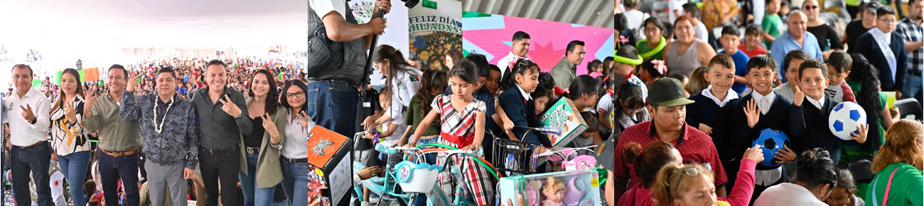 Posteriormente, invitó a las y los menores a subir al escenario para participar en bailes y la entrega de juguetes, y entregó bicicletas, muñecas, carritos, pelotas y balones que llenaron de emoción los rostros de todas y todos.