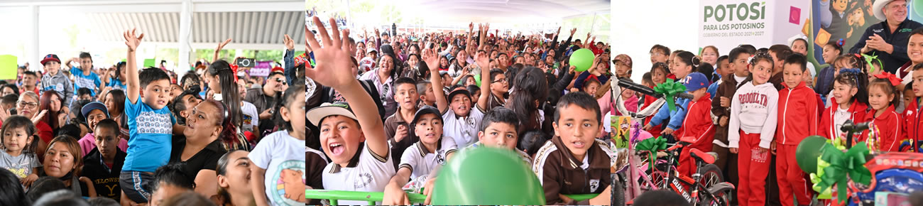 San Luis Potosí SLP.- El Altiplano potosino se llenó de color y vida con la celebración del Día de la Niñez en Real de Catorce y Matehuala, donde el Gobernador del Estado, Ricardo Gallardo Cardona, continuó con las convivencias en un ambiente de fiesta, y dónde ratificó el apoyo sin límite a las familias, especialmente a la infancia, que es el futuro del Estado.