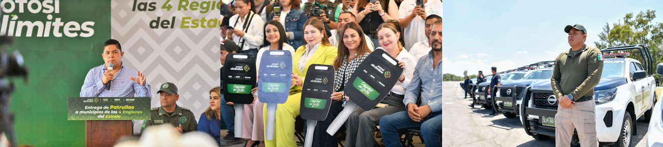 Esta nueva entrega es parte de la estrategia integral de seguridad que invierte más de 600 millones de pesos en el último año e incluye la adquisición de un helicóptero, 25 patrullas para la Guardia Civil Estatal, seis blindados Rhino, además de 25 unidades para Villa de Pozos, 4 camionetas para Protección Civil y dos vehículos y cuatro remolques a la Comisión Estatal de Búsqueda de Personas, acciones sin precedentes para fortalecer las acciones de prevención y atención a las y los potosinos.