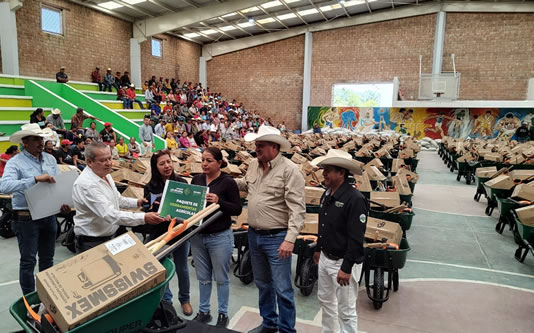 San Luis Potosí SLP.- El Gobierno Estatal de Ricardo Gallardo Cardona continúa apoyando sin límites al campo potosino por lo que ahora, a través de la Secretaría de Desarrollo Agropecuario y Recursos Hidráulicos (Sedarh), entregó cientos de equipos y paquete de herramientas a familias de Charcas con la finalidad de mejorar la calidad de vida de los productores del campo de este municipio.