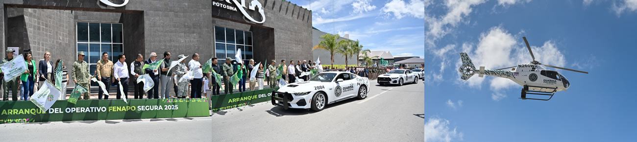 San Luis Potosí SLP.- Al entregar más de 25 patrullas, tres vehículos blindados, y el nuevo helicóptero para fortalecer y equipar a la Guardia Civil Estatal (GCE), el Gobernador del Estado de San Luis Potosí Ricardo Gallardo Cardona, puso en marcha el operativo “Fenapo Segura” que protegerá a visitantes nacionales y extranjeros durante la Feria Nacional Potosina 2025.