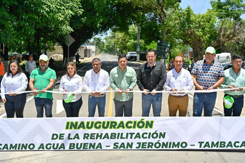 Con una inversión de 30 millones de pesos, Ricardo Gallardo Cardona inauguró el camino Agua Buena-San Jerónimo-Tambaca en el municipio de Tamasopo, el cual, con una rehabilitación de 13 kilómetros de extensión, beneficiará a 17 comunidades y a más de 17 mil personas, terminando con un desinterés de 30 años por parte de los gobiernos anteriores. El proyecto comprende la reparación del pavimento con aplicación de base hidráulica, obras de drenaje, colocación de carpeta asfáltica y la instalación de señalamientos de seguridad y prevención.