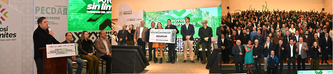San Luis Potosí SLP.- Al entregar los estímulos económicos y reconocimientos del Programa de Estímulos a la Creación y Desarrollo Artístico (PECDA) 2025, que este año aumentó el número de beneficiarios a 67 artistas con una inversión conjunta de 4 millones 150 mil pesos, el Gobernador de San Luis Potosí Ricardo Gallardo Cardona refrendó el compromiso de fortalecer el desarrollo artístico y cultural en el Estado.