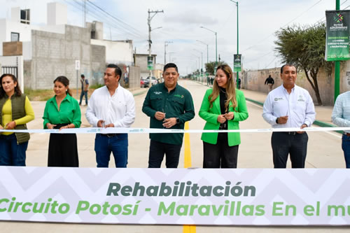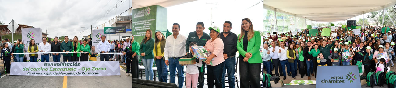 San Luis Potosí SLP.- El Gobernador de San Luis Potosí Ricardo Gallardo Cardona, inauguró la rehabilitación integral de los tramos desde el Circuito Potosí a Maravillas y del camino Estanzuela–San Pedro Ojo Zarco, cómo parte del nuevo circuito desde la capital potosina que llegará hasta la cabecera municipal de Mexquitic para una movilidad sin límites, al tiempo que entregó apoyos del programa “Educación Sin Límites” a alumnas y alumnos de educación básica.