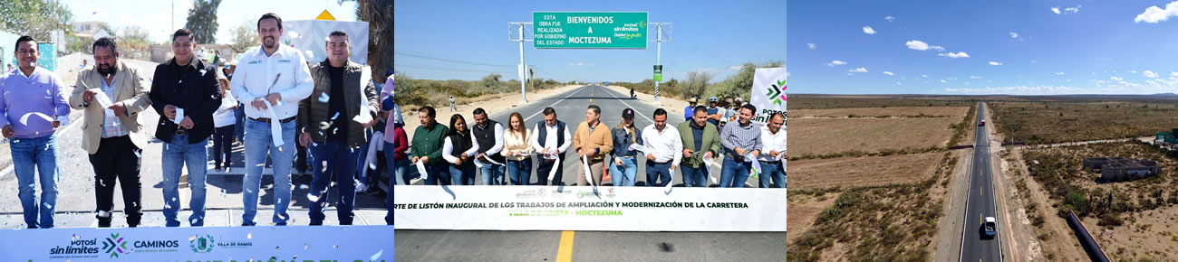 Tan solo en las últimas semanas, y como parte de un intenso trabajo, el Gobernador del Estado inauguró la supercarretera Villa de Arista–Moctezuma, una obra de 466 millones de pesos que abarca 23.4 kilómetros, puso en operación el renovado camino Villa de Ramos-San Francisco-Los Hernández, arrancó la modernización de la carretera 22 en Zaragoza y en Villa de Pozos inició la rehabilitación de avenida Seminario y el entubamiento del Río Españita.