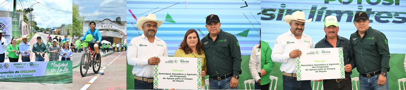 San Luis Potosí SLP.- El Gobernador de San Luis Potosí, Ricardo Gallardo Cardona, arrancó en Rayón obras de infraestructura vial y entregó al servicio de las y los habitantes la nueva ciclovía inclusiva hacia la carretera federal 70, acciones que fortalecen la movilidad sin límites en esta demarcación.