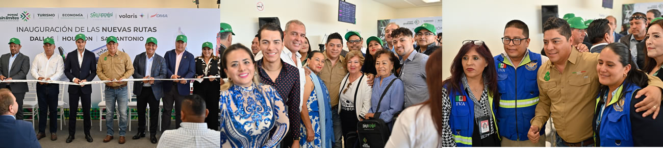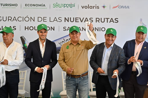 San Luis Potosí SLP.- En continuidad al desarrollo sin límites de San Luis Potosí, el Gobernador del Estado Ricardo Gallardo Cardona cortó el listón inaugural de tres nuevas rutas aéreas hacia Houston, Dallas y San Antonio, Texas en Estados Unidos con la compañía Volaris, donde se anunció una inversión de 400 millones de pesos para ampliación de las instalaciones del aeropuerto internacional Ponciano Arriaga.
