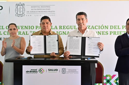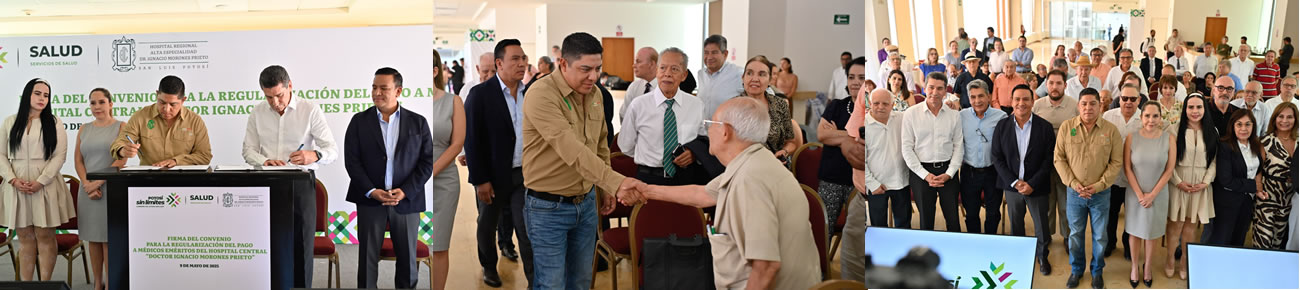 San Luis Potosí SLP.- Cómo un acto más de justicia histórica, el Gobernador del Estado de San Luis Potosí, Ricardo Gallardo Cardona, firmó el convenio para la regularización del pago a médicos eméritos del Hospital Central Doctor Ignacio Moreno Prieto, con lo que se establece formalmente una prestación mensual vitalicia para las y los doctores, quienes durante años brindaron atención a la población.