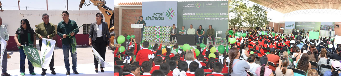 Soledad de Graciano Sánchez SLP.- Juan Manuel Navarro Muñiz, Alcalde de Soledad de Graciano Sánchez, y el Gobernador de San Luis Potosí, Ricardo Gallardo Cardona, dieron arranque a la reconstrucción integral de la Escuela Primaria “Graciano Sánchez” en la comunidad de Enrique Estrada; un proyecto que contempla la demolición y construcción de seis aulas, un módulo de Dirección, sanitarios y obras complementarias, con una inversión aproximada de siete millones de pesos, beneficiando directamente a 292 alumnos y alumnas.
