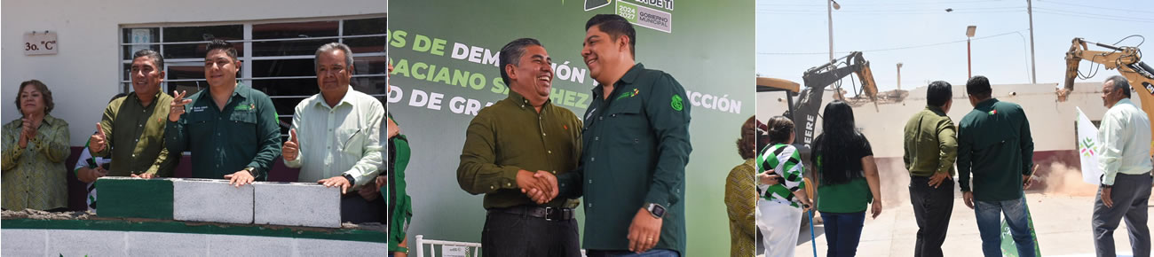 Soledad de Graciano Sánchez SLP.- Juan Manuel Navarro Muñiz, Alcalde de Soledad de Graciano Sánchez, y el Gobernador de San Luis Potosí, Ricardo Gallardo Cardona, dieron arranque a la reconstrucción integral de la Escuela Primaria “Graciano Sánchez” en la comunidad de Enrique Estrada; un proyecto que contempla la demolición y construcción de seis aulas, un módulo de Dirección, sanitarios y obras complementarias, con una inversión aproximada de siete millones de pesos, beneficiando directamente a 292 alumnos y alumnas.