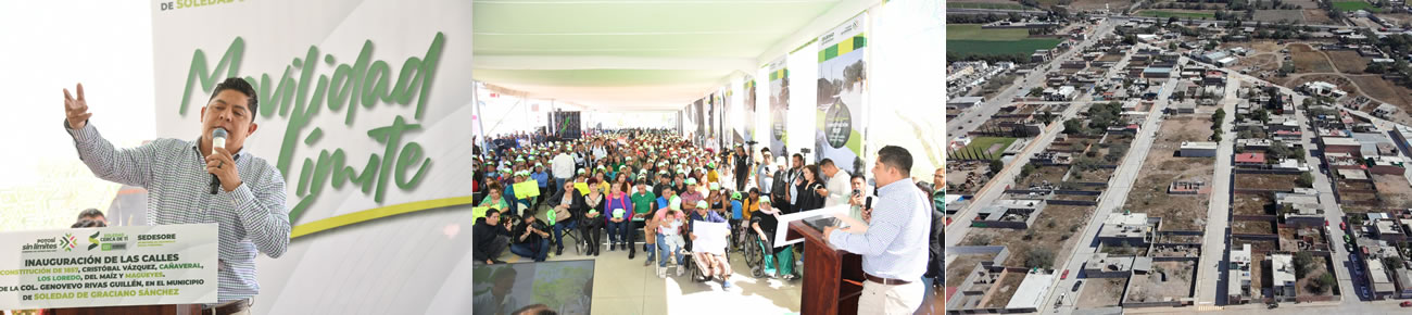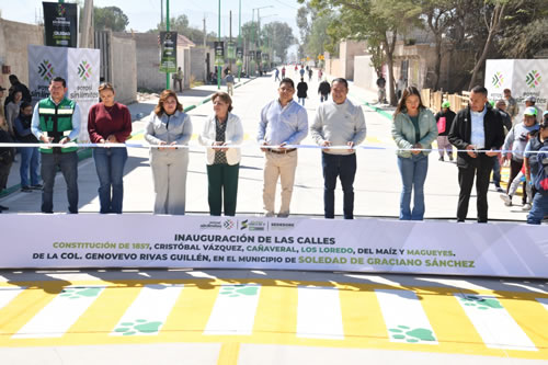 Soledad de Graciano Sánchez SLP.- En un multitudinario evento, donde el sentir de gratitud y emoción de cientos de habitantes de Soledad de Graciano Sánchez, el Gobernador, Ricardo Gallardo Cardona, con el respaldo del Alcalde, Juan Manuel Navarro Muñiz, inauguró la modernización de las calles Constitución de 1857, Cristóbal Vázquez, Cañaveral, Los Loredo, Del Maíz y Magueyes en la colonia Genovevo Rivas Guillén Norte Quinto Plano, una obra realizada con los esfuerzos del Ayuntamiento y del Gobierno Estatal, representando una inversión superior a los 58 millones de pesos.