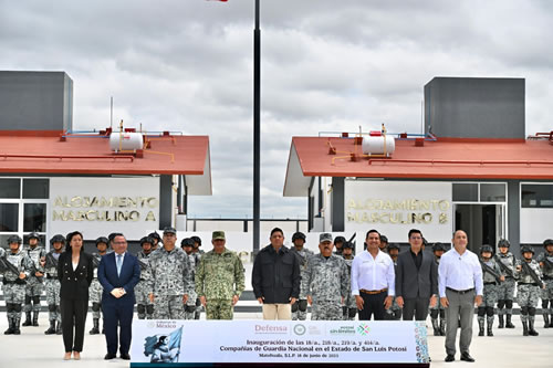 San Luis Potosí SLP.- Con gestiones del Gobernador del Estado de San Luis Potosí Ricardo Gallardo Cardona, la Guardia Nacional destacamentó las nuevas compañías 18/a., 218/a., 219/a. y 414/a. en Matehuala, lo que permitirá reforzar la paz y la tranquilidad en el altiplano potosino.