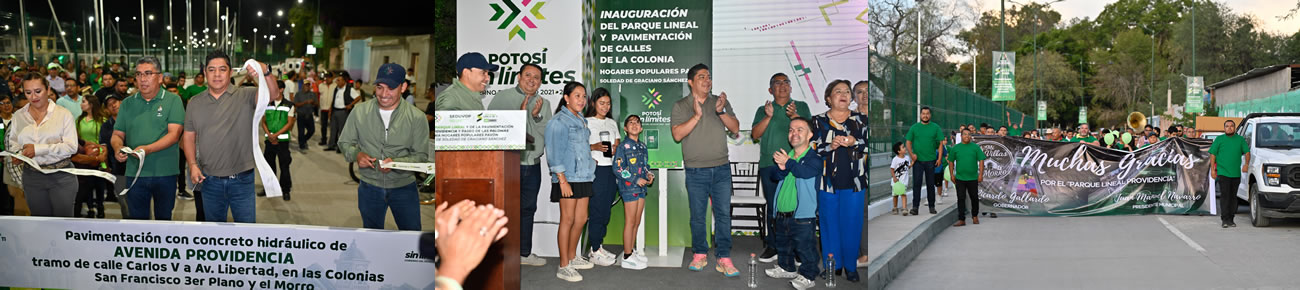 Soledad de Graciano Sánchez SLP.- Juan Manuel Navarro Muñiz, Alcalde de Soledad de Graciano Sánchez, y el Gobernador del Estado, Ricardo Gallardo Cardona, escriben hoy una página histórica en el desarrollo urbano del municipio, al inaugurar tres obras que transforman para siempre la vida de sus habitantes con una inversión estatal conjunta que supera los 150 millones de pesos; el protagonista de la noche fue el imponente Parque Lineal “Providencia”, el primero en su tipo en Soledad y el más grande de todo México, un corredor que une a cinco colonias y a miles de familias en un entorno seguro, moderno y lleno de vida, acompañado de dos imponentes obras viales que consolidan esta zona como un nuevo polo de bienestar, movilidad y orgullo para Soledad.