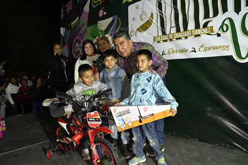 Soledad de Graciano Sánchez SLP.- Bajo la política de estar siempre cerca de todas las familias de Soledad de Graciano Sánchez, el Alcalde, Juan Manuel Navarro Muñiz, visitó diversas comunidades en el marco de las Posadas Navideñas, en vísperas de la Navidad, alegrando los rostros de niños y niñas, jóvenes y adultos mayores, con música, entretenimiento sano y obsequios como juguetes y cobertores como parte del Programa Invernal.