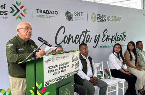 San Luis Potosí SLP.- Con la amplia participación de las y los potosinos y el sólido respaldo de las empresas, se llevó a cabo con gran éxito en Villa de Pozos, la Feria de Empleo “Conecta y Empléate”, organizada por la Secretaría del Trabajo y Previsión Social (STPS), a través del Servicio Nacional de Empleo (SNE), con más de 500 vacantes ofrecidas por 26 empresas locales, nacionales e internacionales.