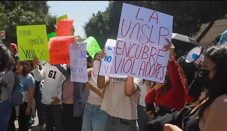 Las manifestantes denunciaron que la agresión no ocurrió en los baños, como informó inicialmente la institución, sino en el cubículo de la Federación Universitaria Potosina (FUP), dentro de la Facultad. “Sabemos que fue en el cubículo de la Federación Universitaria. Esto se oculta para proteger a los responsables que forman parte de la institución”, señaló una alumna durante la protesta.