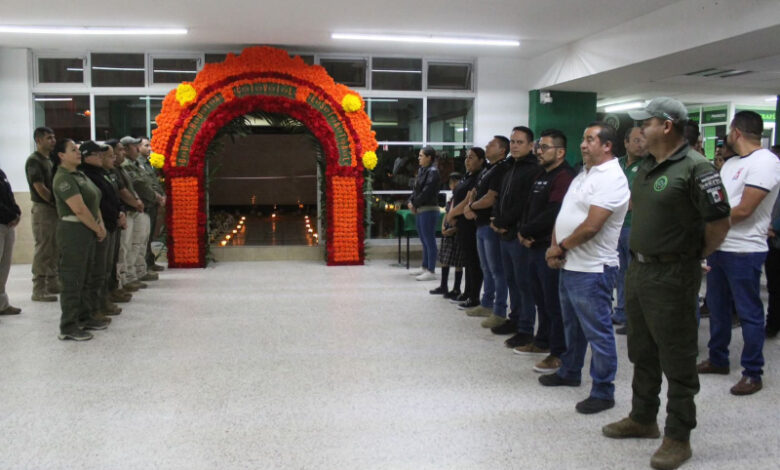 San Luis Potosí, México.- Con motivo del Día de Muertos, la Secretaría de Seguridad y Protección Ciudadana del Estado (SSPE) rindió homenaje a los 253 agentes que han perdido la vida en cumplimiento de su deber, así como a quienes fallecieron por causas naturales o enfermedad, en un acto de respeto y memoria colectiva.