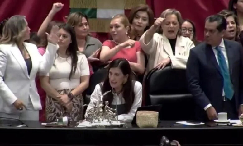 El homenaje provocó gritos, reclamos e incluso manoteos entre legisladoras de Morena, el PAN y el PT, quienes subieron a la Mesa Directiva para exigir que los minutos de silencio se concedieran por separado.