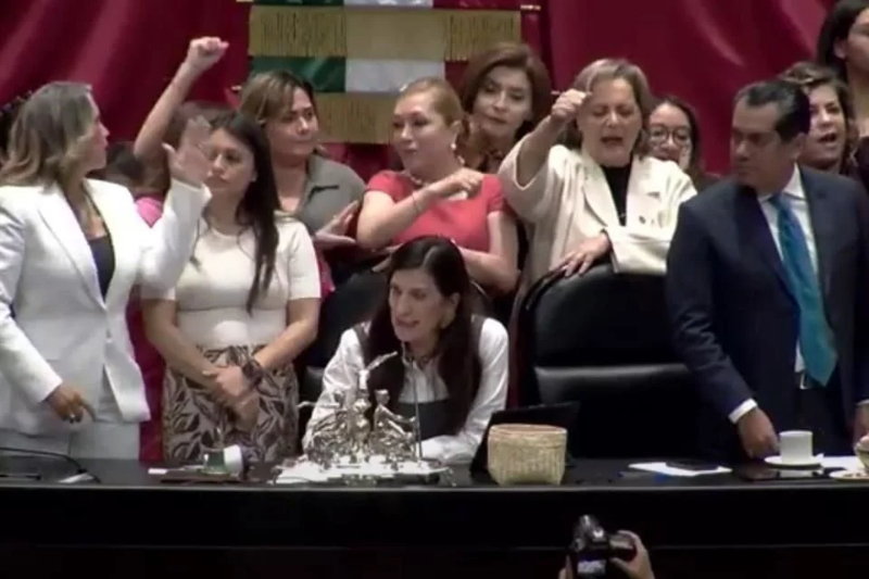 La tensión escaló cuando diputadas del PAN y de Morena subieron al estrado, intercambiando gritos y empujones, mientras el vicepresidente Sergio Gutiérrez Luna trataba de calmar los ánimos.