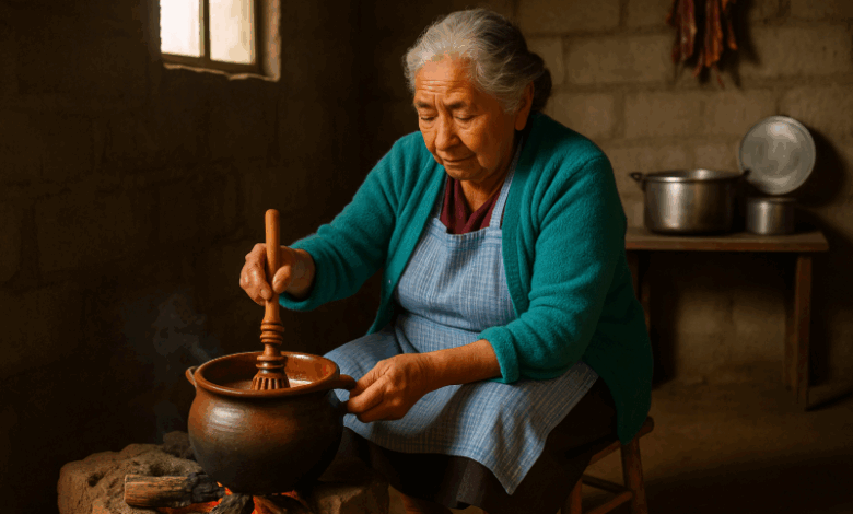 Por:Doña Carmen, mientras se prepara un chocolate espumoso.