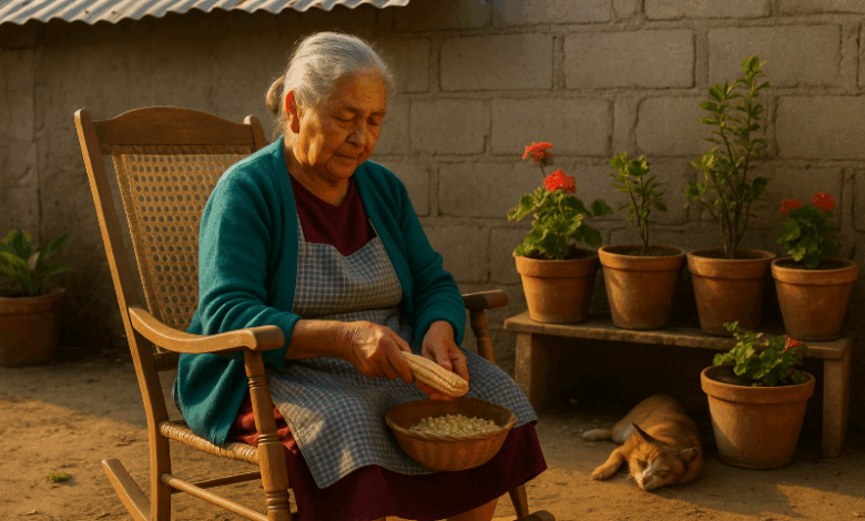 Por: Doña Carmen, sentada en su mecedora mientras desgrana elotes bajo el sol de la tarde.