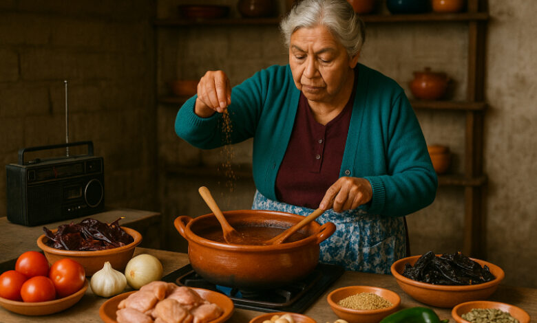 Por: Doña Carmen, mientras prepara su mole y escucha las noticias.