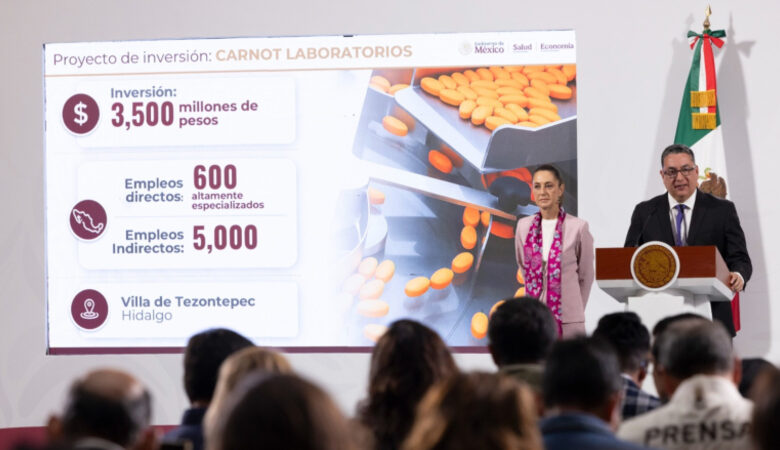 Por su parte, Carnot Laboratorios invertirá también 3 500 millones de pesos en los próximos cinco años para construir una nueva planta en Villas de Tezontepec, Hidalgo. Este proyecto generará 600 empleos directos de alta especialidad y al menos 5 000 indirectos, y permitirá exportar productos a más de 30 países.