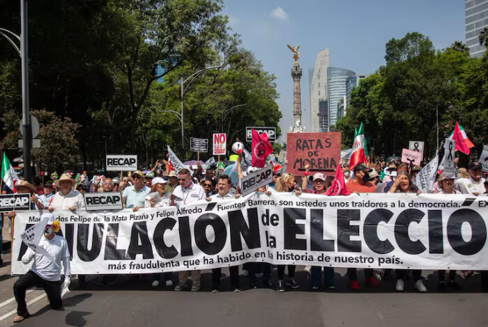 Integrantes de la Asociación Nacional de Magistrados de Circuito y Jueces de Distrito (JUFED), así como activistas de organizaciones como Resistencia Civil Activa y Pacífica (RECAP) y el Frente Cívico Nacional, marcharon este domingo 6 de julio en la Ciudad de México para exigir la anulación de la elección judicial celebrada el 1 de junio, considerada por ellos como la más fraudulenta en la historia del país.