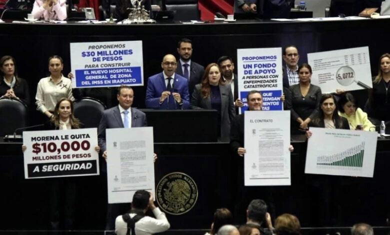 Ciudad de México, México.– En una sesión marcada por el debate, las acusaciones y la tensión política, la mayoría de Morena y sus aliados aprobaron en lo general el Presupuesto de Egresos de la Federación (PEF) 2026, que contempla un gasto histórico de 10 billones 193 mil millones de pesos, mientras la Oposición protestó con sombreros “ensangrentados” y consignas por los recortes en materia de seguridad pública y a los estados y municipios.