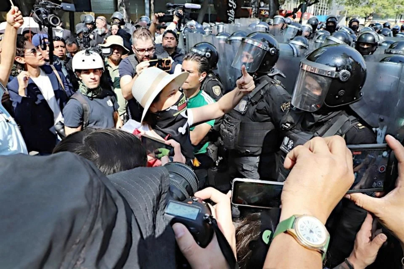 Sin embargo, al llegar al cruce de Palma y Cinco de Mayo, ya en el Centro Histórico y a escasos metros de la plancha capitalina, nuevamente se encontraron con un cerco policial. Las autoridades argumentaron que la logística del desfile aún no había sido retirada, por lo que el paso permanecía cerrado.