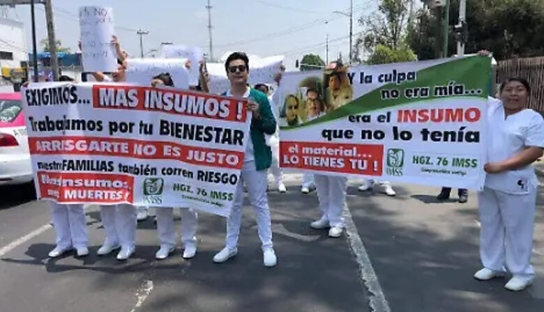 Ciudad de México, México.—Personal médico y administrativo del Estado de México realizó este miércoles nuevas protestas para exigir solución a la falta de medicamentos, el cumplimiento de plazas laborales y un reajuste salarial derivado de la transición al sistema IMSS-Bienestar.