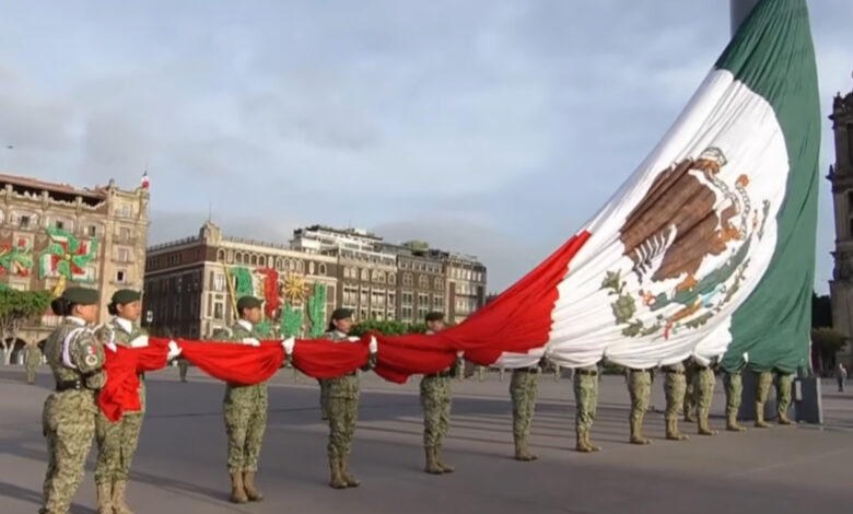 Ciudad de México, México.- La presidenta Claudia Sheinbaum Pardo encabezó la ceremonia solemne de izamiento a media asta de la bandera monumental en el Zócalo capitalino, en memoria de las víctimas de los sismos del 19 de septiembre de 1985 y de 2017.