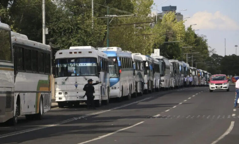 El acto realizado en la Plaza de la Constitución recordó, sin embargo, las concentraciones masivas del priismo. Desde Tepito hasta Izazaga y Circunvalación, decenas de autobuses con la leyenda “Morena. Amor con amor se paga” se formaron para ingresar al Zócalo. Sobre Calzada de Tlalpan, los cuatro carriles estuvieron ocupados con contingentes rumbo al Centro Histórico.