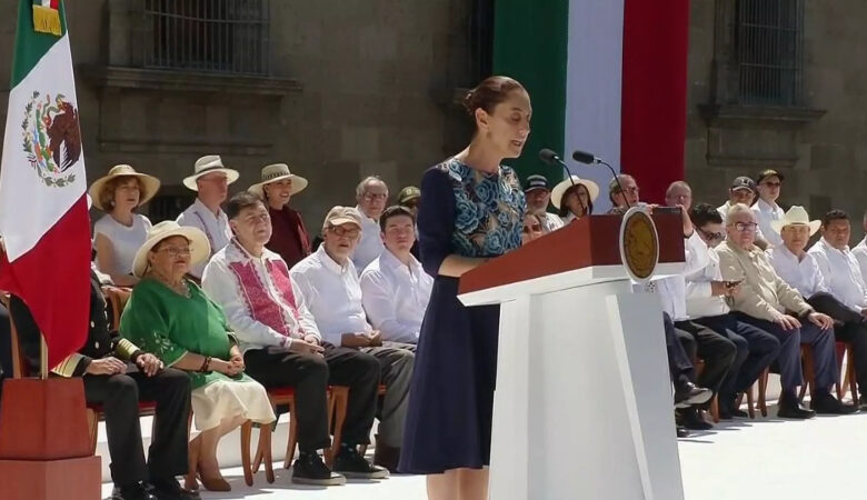 Desde el Zócalo, la presidenta elogió a López Obrador y omitió casos de corrupción recientes.