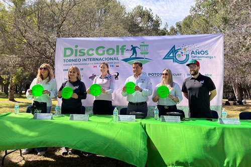 San Luis Potosí SLP.- Como parte de los festejos del 40 aniversario del parque Tangamanga I y siguiendo la dinámica del Gobernador de San Luis Potosí, Ricardo Gallardo Cardona, de impulsar el deporte en todas sus disciplinas, este martes se presentó el torneo de Disc Golf que se llevará a cabo del 19 al 22 de enero, con representantes de México, Estados Unidos de América, Canadá y Colombia.